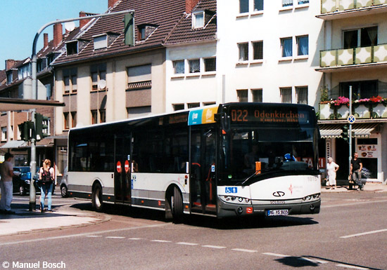 Erstmals seit über 25 Jahren beschaffte die NVV im Jahr 2010 wieder Linienbusse eines anderen Herstellers als Mercedes-Benz und MAN. Zusätzlich zu den zwölf EvoBus MB O 530 (Citaro) gelangten drei Solaris Urbino 12 als Wagen 1013 bis 1015 in den Bestand. Im Stadtteil Odenkirchen konnte Wagen 1015 im Bild festgehalten werden.