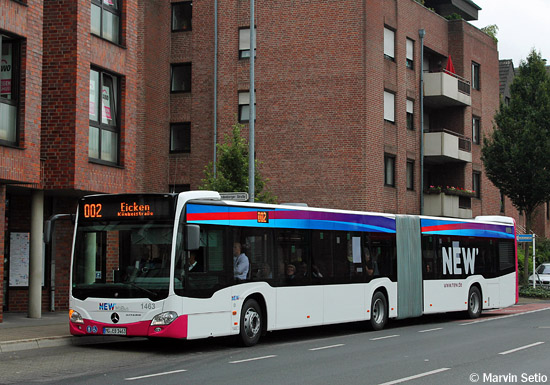 Die sechs EvoBus MB O 530 G C2 (Citaro) des Baujahres 2014 werden unter den Wagennum- mern 1461 bis 1466 geführt. Marvin Setio nahm Wagen 1463 am 15.08.2014 an der Haltestelle Brandenberger Straße auf.