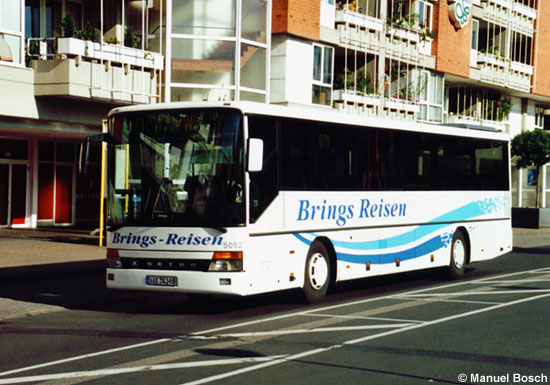 Die Brings Reisen OHG aus Willich-Schiefbahn ist im Linienauftragsverkehr für die Busverkehr Rheinland GmbH (BVR) tätig. In diesen Diensten werden unter anderem zwei Setra S 315 UL eingesetzt, von denen das Exemplar mit dem Kennzeichen VIE-AJ 98 am 30.05.2007 am Viersener Busbahnhof aufgenommen wurde. | |
