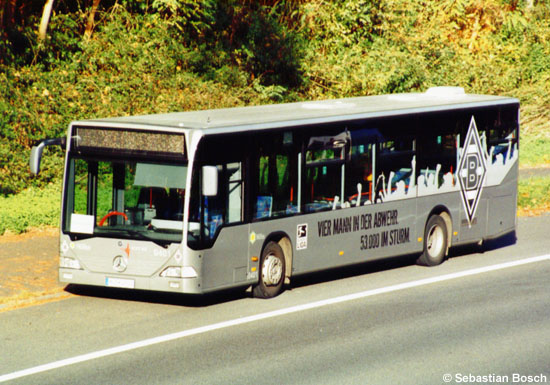 Nachdem längere Zeit keine neuen Vollwerbungen zu verzeichnen waren, erhielten im Sommer 2005 vier EvoBus MB O 530 (Citaro) des Baujahres 2004 eine Werbegestaltung für den Fuß- ballverein Borussia Mönchengladbach. Dabei wurde erstmals seit über fünf Jahren wieder die Grundfarbe einer Vollwerbung lackiert statt seitdem nur mit Folien geklebt.